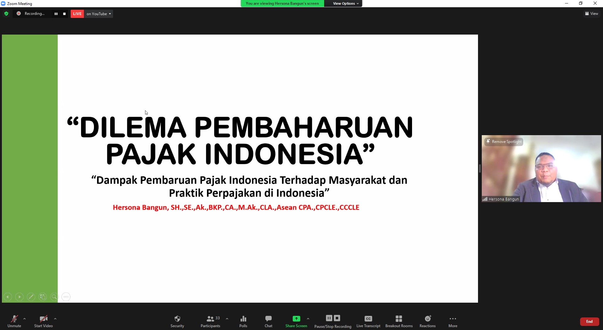 Webinar Diskusi aktual bertemakan Dilema Pembaharuan Pajak Indonesia